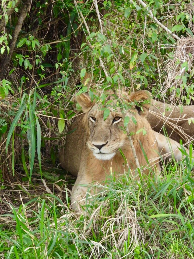 Le clou de la matinée a été notre rencontre avec deux lionnes couchées, accompagnées d’un lion à proximité. Ce moment était absolument incroyable ! Philippe, notre guide, nous a partagé tellement d’informations sur le comportement et les habitudes de chaque animal, ce qui a rendu l’expérience encore plus fascinante.