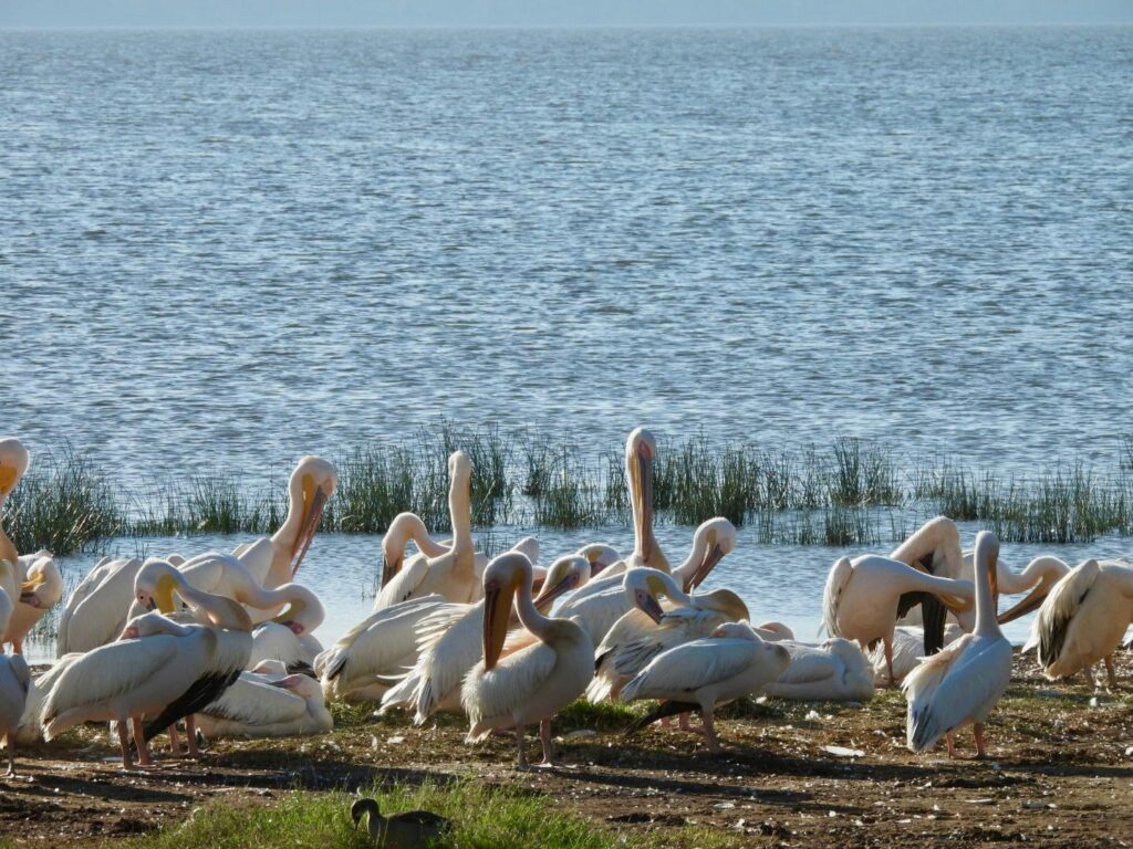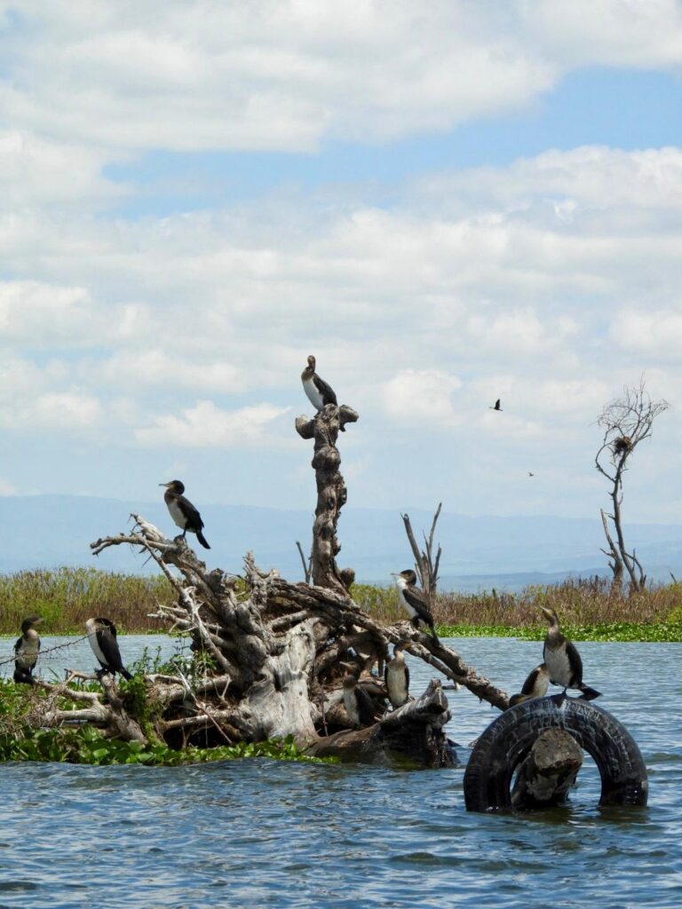 À notre arrivée, nous avons été accueillies par Ken, notre guide pour l’excursion sur le lac. Dès le début, nous avons eu la chance d’apercevoir un aigle pêcheur d’Afrique, majestueux, puis des cormorans. Nous avons également croisé des hippopotames, impressionnants et dangereux : Ken nous a expliqué que plus de cinq pêcheurs meurent chaque année au lac à cause d’eux.