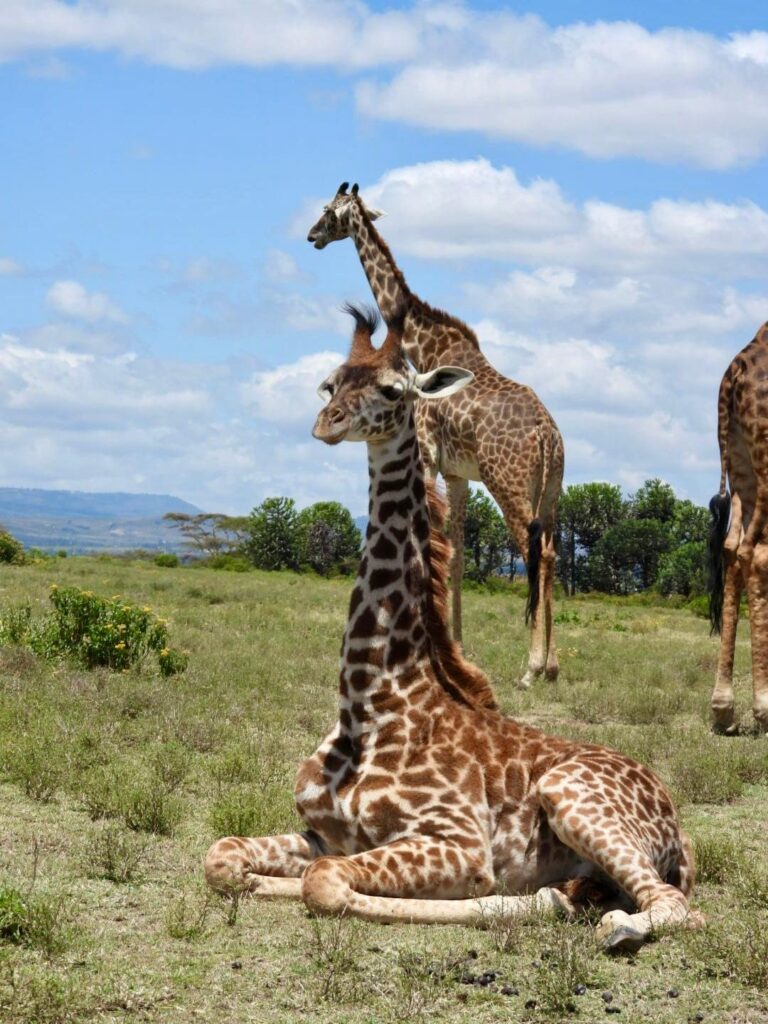 Le réveil a sonné et nous étions hyper excitées pour cette première journée de safari. À peine entrées dans le parc national du Masai Mara, nous tombons sur un petit girafon avec sa maman. Franchement, c’était merveilleux, un vrai moment magique.