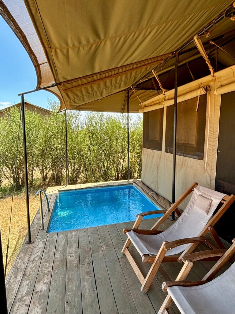 Nous voilà enfin arrivées dans le Masai Mara, où nous avons logé au PrideInn Mara Camp pour deux nuits. L’endroit était tout simplement merveilleux : nous étions entourées de petits animaux et l’ambiance du camp était chaleureuse et authentique.