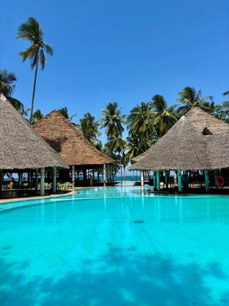 Nous avons profité de ces derniers jours à Diani Beach pour nous détendre pleinement. Entre les transats, la piscine de l’hôtel et la chaleur du soleil, chaque instant était un vrai moment de plaisir. Nous avons également apprécié la gentillesse et la disponibilité du personnel, ainsi que les moments conviviaux passés à jouer au volley avec les jeunes de l’hôtel et d’autres voyageurs.